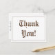 Este design de cartão postal de agradecimento em estilo vintage apresenta a mensagem "Obrigado!" na frente, juntamente com uma mensagem personalizada no verso. Pode ser usado para agradecer a alguém que fez algo simpático.