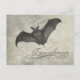 Uma ilustração de morcego assustador enfeita este cartão-postal de arte de colagem inspirado em gótica.