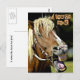 Cartão de posto de cavalo que está rindo. Frente diz "Ria Duro". O verso diz: "Faz o coração sentir-se bem!"