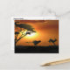A silhueta de um guepardo perseguindo uma gazela. O pôr do sol escurece atrás deles.
