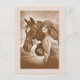 Fotografia de uma mulher vestida cigana acariciando seu cavalo. Isso é feito em tons de sépia ricos.