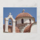 Fotografia de arquitetura tirada em Creta, Grécia. Uma vista cênica de um topo da igreja com um teto em forma de sino e cúpula com céu azul sem nuvens atrás. Um cartão de posto da igreja bonito, religioso ou não.