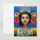 Belo cartão de Posto com um retrato original de uma garota ucraniana. Em pé com a Ucrânia