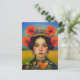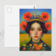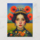 Belo cartão de Posto com um retrato original de uma garota ucraniana. Em pé com a Ucrânia