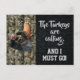 Os perus estão a ligar e eu tenho de ir! Um cartão de posto para o caçador de peru duro que adora perseguir os perus tom gobbler no mato. O fundo é camo e placa de diamante.