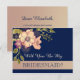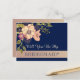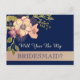 Cartão de proposta de damas de honra elegante e rústico em azul marinho, com belas flores em rose gold em aquarela.