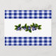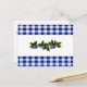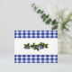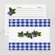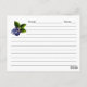 Esta Cartão de Receita Blueberry apresenta mirtilos desenhados por mouse e folhas sobre fundo de gingham azul e branco.