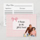 Placa cor-de-rosa com xadrez de casal retrógrada adorável para a Noiva. Coloque esses cartões de receita fofos no convite para o casamento ou Salve as Datas para que seus amigos e familiares se encham e retornem com o RSVP ou no casamento.