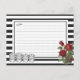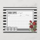 Mime o cozinheiro com estilo moderno vintage com este design de cartão de receita de rosas vermelhas florais e listras pretas e brancas para cozinha por Holiday Hearts Designs (direitos reservados).