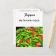 Cartão de receita de pimentos. Imagem de pimentos vermelhos e verdes numa pilha. Titular de "Pimentos" Personalize o título da receita "Minha receita favorita" uma vez e ela aparecerá na frente e atrás Escreva ou cole sua receita para um prato de pimenta no verso. ***Parte do conjunto coordenado - bkm3u.