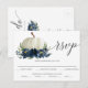 Este design apresenta uma abóbora branca rústica aninhada em um buquê de flores navais pintadas à aguarela e folhagens exuberantes. Fontes clássicas elegantes unem este design. Veja a coleção completa para mais itens correspondentes!