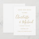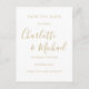 Com nomes no estilo de assinatura, este elegante cartão de salvar a data em dourado e branco pode ser personalizado com os detalhes do seu dia especial de casamento em tipografia dourada chique. Concebido por Thisisnotme©