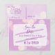 Lindos cartões-postais de salvar data de casamento em tons de lavanda e roxo. Deixe seus convidados se prepararem com antecedência para a data do seu casamento enviando esses belos e acessíveis cartões-postais de salvar data em roxo.