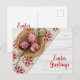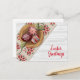 Comemore a Páscoa com esta carta de saudação maravilhosamente projetada, que inclui os ovos de Páscoa tradicionais inspirados no público em um ninho confortável. O elegante padrão ao estilo dos bordados e o fundo da madeira rústica adicionam um toque quente e festivo. Perfeito para enviar desejos de Páscoa sinceros à família e aos amigos, este cartão pode ser personalizado com o seu dentro de mensagem pessoal. Seja para um ente querido próximo ou distante, este cartão de Páscoa único trará alegria e tradição para a época de férias.