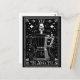 Design de cartão de tarot para amantes de café! O Pote Moka. Ilustrações brancas e negras com uma cafeteira de pote de moka, grãos de café e crânio em um chapéu.