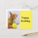 Postal Cartão de tênis com ginger cat e ball