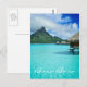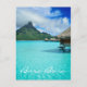 Cartaz vertical de um bungalow submarino da lua de mel na lagoa azul-turquesa de Bora Bora, perto de Tahiti, na Polinésia Francesa, com o texto: Bora Bora.