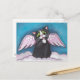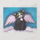 Mesmo os gatos têm anjo-da-guarda! Cartão preto lunático do gato do anjo. Pintura original: acrílico em canvas Lisa 2008 Marie Robinson