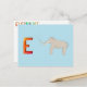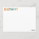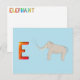 E é para elefante. Use este cartão ABC Zebra para soletração e para fazer letras no verso. A foto na frente é soletrada no verso usando letras coloridas ABC Zebra como guia.