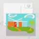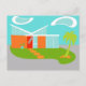 Este cartão moderno da casa dos desenhos animados do meio século tê-lo-á querer pôr para fora a esteira BEM-VINDA e fazer-se em casa! Os anos 60, características de design minimalistas da arte uma pedra lustrosa, alaranjada e uma casa de vidro do aqua em um luxúria, verde, boomerang o gramado dado forma. O gramado forma uns oásis no meio de seus arredores cinzentos, concretos. Uma palmeira verde está balançando na brisa. Quatro, alpondras alaranjadas conduzem a maneira ao retro, vermelho, porta da rua com três, placas de janela retangular, de vidro. À esquerda da porta, um flowerpot de turquesa guardara uma planta tropical, verde. A casa tem uma inclinação, o telhado branco dado forma V que está apontando para dois, branco, nuvens dadas forma do feijão-roxo. O céu é uma máscara positivamente sereno do aqua. Ninguém será quer jogar pedras deste design moderno, de vidro da casa! Compre este produto kitschy, da era espacial e seja o gato o mais fresco em seu bloco!