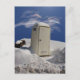 Uma dependência portátil moderna senta-se congelado em uma tração da neve em um dia de inverno brilhante, esperando para servir. Um calendário 2015 decora o verso. Adicione seus nome da empresa e informação no espaço na parte superior.