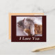 Diz que te amo Gato macho doce chamado Raisin é a estrela deste cartão postal com um brinquedo de cavalo