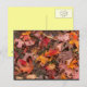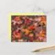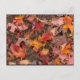 Cartão postal, com fotografia de folhas coloridas de queda na frente; amarelo pálido no verso