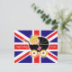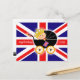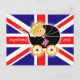 Este cartão bonito caracteriza um bebê em uma carruagem com a bandeira britânica no fundo. Na parte traseira é a skyline de Londres.