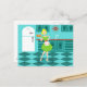Com este cartão retro da cozinha, você pode comer sua torta e comê-la, demasiado. Este desenho kitschy, minimalista da arte caracteriza uma dona de casa perfeita dos anos 50, em sua cozinha moderna do meio século. O padeiro bonito está vestindo um flouncy, o vestido do verde e um avental branco com detalhe vermelho. Não um cabelo em sua cabeça loura é fora do lugar. Em uma mão, está guardarando a fruta de seu trabalho--uma lindo, estrutura cobriu, torta da fruta. Uns relance e você saberão que suas crostas de torta flocosos são em segundo a nenhuns. Está estando em um assoalho do tabuleiro de damas do aqua e da cerceta, de que esteja indubitàvelmente limpo bastante comer fora. Contra uma parede do aqua, nós vemos o cabinetry da cerceta com trabalho da guarnição do aqua, uma bancada vermelha, trações vermelhas da gaveta, e acentos pretos do starburst. Um vermelho, pulso de disparo do starburst está pendurando na parede. Ao lado, há um refrigerador avançado, branco com punhos de prata. Pelo menos, o refrigerador era in 1950 avançado. Agora, é apenas sonhador liso! Se você é Homemaker de Suzie ou tem simplesmente uma afinidade para todo o vintage das coisas, você é certo amar esta fatia deliciosa de americana.