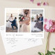 Este modelo de cartão-postal de agradecimento de casamento em colagem de três fotos simplesmente chique apresenta um design elegante, minimalista e moderno. A frente apresenta seus primeiros nomes e data sob suas três fotos favoritas e uma mensagem de 'AMOR e OBRIGADO' transmitida com uma mistura marcante de duas fontes distintas, com 'e' em uma escrita leve e fluida entre as outras duas palavras, que estão em maiúsculas com uma aparência formal ousada e nítida. A parte 'AMOR e OBRIGADO' do design é preta e não pode ser alterada. Ao editar a frente para mostrar seus próprios nomes e data, você pode alterar a cor desse texto para uma determinada cor ou algo mais em vez do preto ligeiramente suavizado padrão, de acordo com seu gosto.