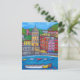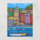 Cartão de Posto colorido da vila colorida e fascinante de Vernazza e é uma bela catedral em Cinque Terre, Itália pela artista popular Lisa Lorenz