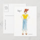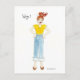Menina vestindo jeans e um topo amarelo brilhante fica de pé com as mãos sobre os quadris com uma atitude.