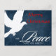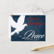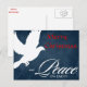 Feliz Natal e paz na terra, com imagem do Espírito Santo, pomba branca, em vôo em um cartão azul do fundo da noite