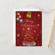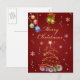 Cartão do Natal com a árvore de Natal, os baubles, os sinos, as caixas de presente e as estrelas bonitos.
