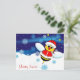 Cartão do Natal com uma abelha com o terno de Papai Noel
