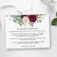 Pormenores do Casamento Clássico da Clorideira Borgonha Floral Moderna Detalhes do Casamento Inserir Cartão inclui peões, folhas de eucalipto e outros belos lençóis verdes.