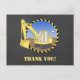 Construção do tema Obrigado Nota carta com um escavador num fundo de giz é certamente um sucesso para rapazes de todas as idades. Este cartão de nota coordena-se com nossos convites de aniversário temáticos da Construção e outros produtos de temas da construção.