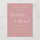 Com nomes de estilo de assinatura, este cartão de salvar a data cor de rosa elegante pode ser personalizado com as informações do seu dia especial de casamento em letras brancas chiques. Criado por Thisisnotme©