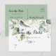 Este elegante cartão de save the date horizontal com folhagem em dourado é perfeito para um casamento moderno. O design apresenta folhas de eucalipto verdes botânicas e douradas desenhadas à mão, inspirando beleza artística.