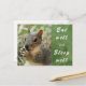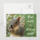 Um cartão de posto mostrando um esquilo comendo alegremente — desejando que ele se recupere/ se junte logo. A intenção deste cartão-postal é fazer o receptor feliz e encorajá-lo a seguir em frente na vida ou a ficar tranquilo em sua vida estressante. Tema: esquilo, animais, animal, natureza, feliz, fique bem. cor: verde, branco, marrom. (sinta-se à vontade para personalizar a foto e o texto)