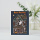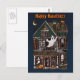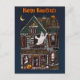 Mande cumprimentos felizes para seu amigo com este cartão postal divertido, com uma casa assombrada e detalhada, com fantasmas escondendo-se nas janelas e morcegos voando do belfrade.