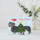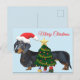 Postal Feliz Natal Dachshund com cartão de árvore