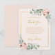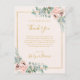 Este cartão de agradecimento de recepção floral pastel elegante é perfeito para a recepção do seu casamento botânico boho, rosa na primavera. O design apresenta uma moldura em folha de ouro acompanhada por uma simples rosa de pêssego em champanhe em aquarela, folhagem de eucalipto verde sálvia minimalista e uma papoula cor-de-coral selvagem moderna, única e neutra. O design é luxuoso, ideal para um casamento clássico, sofisticado e delicadamente chique no verão, outono ou inverno. Por favor, sinta-se à vontade para entrar em contato conosco com quaisquer perguntas sobre o design do produto; votos de felicidade!