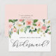 Bonito cartão de proposta da madrinha de tema floral. Peça à família e aos amigos que façam parte do seu casamento com este cartão personalizado "Você será minha dama de honra". Apresenta a terra floral de cor d'água de rosas brancas e rosa-pinceladas e verde-claro. Personalizar adicionando um nome e uma mensagem