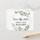 Esta folha verde tropical salva o cartão de data é perfeito para um casamento de destino. A design apresenta lindas folhas verdes pintadas à mão, enfeitando um quadro geométrico dourado.