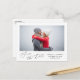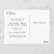 Este simples cartão postal preto e branco para salvar a data apresenta uma grande fotografia e uma caligrafia moderna. Na frente do cartão postal, você pode adicionar uma grande foto paisagem. Abaixo da foto, "Save the Date" (Salvar a data) é escrito em letras bonito de script à esquerda. À direita, adicione seus nomes, data do casamento e local do casamento. A cor branca do fundo e a cor do texto preto podem ser alteradas se desejado. A parte de trás do cartão inclui espaço para detalhes do casamento.