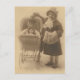 Postal garota e sua boneca no cartão de posto de carruage