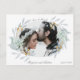 casamento elegantebotânicofolhas de aquarelaazulverdecartão de fotocartão de agradecimentocartão postal com foto
