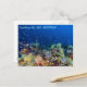 Um cartão que caracteriza escolas abundantes de peixes tropicais e uma variedade surpreendente de duro colorido e de corais macios. A foto foi tomada no grande recife de coral de Austrália.