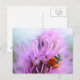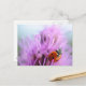 Postal Ladybug no cartão de flores roxo